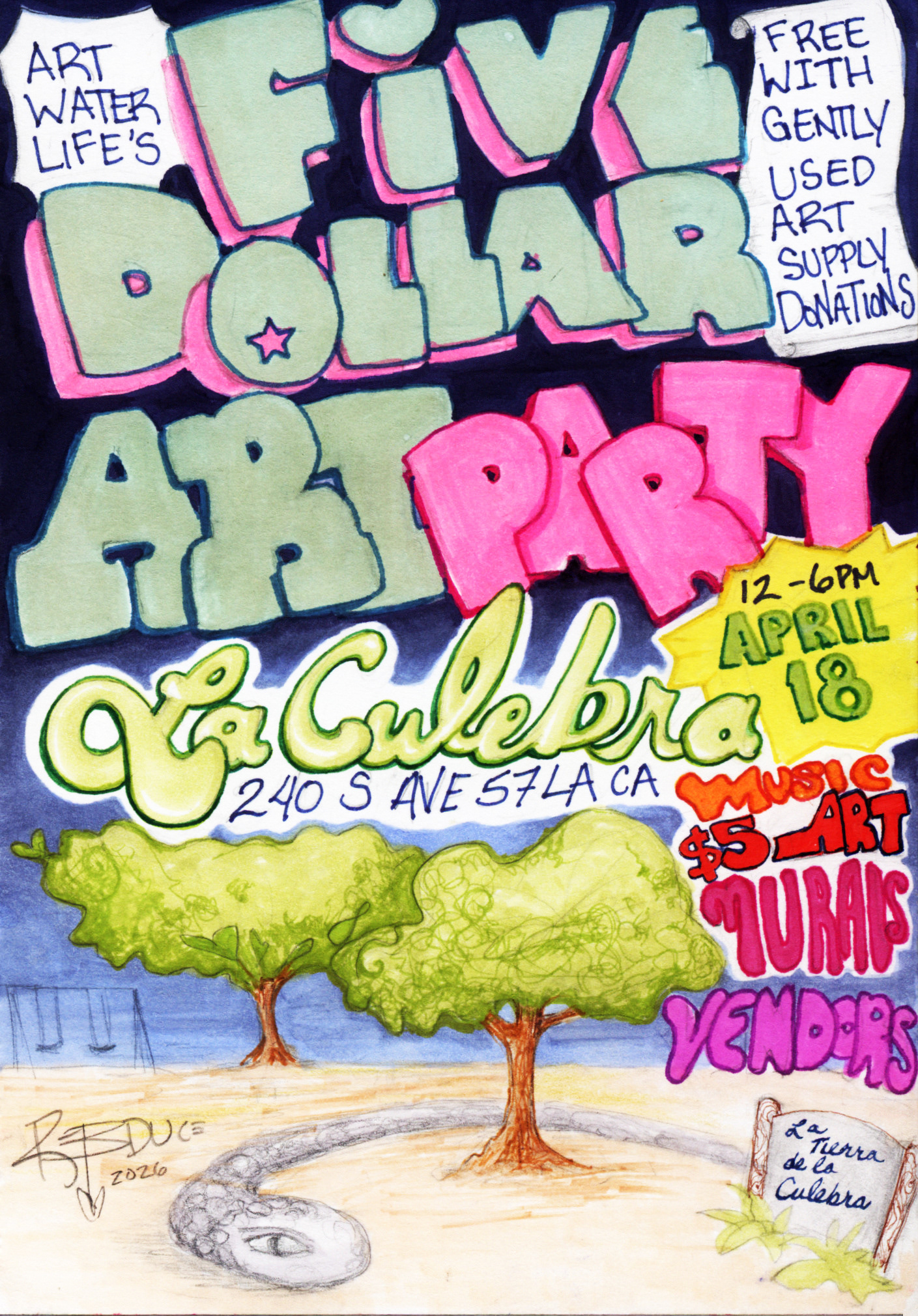 Join dozens of multidisciplinary creatives, musicians, muralists, and vendors for an afternoon of creativity and community at ARTWATERlife’s Five Dollar Art Party